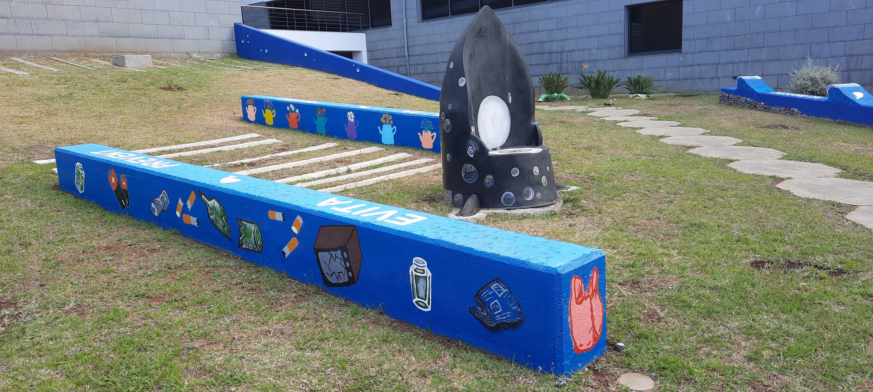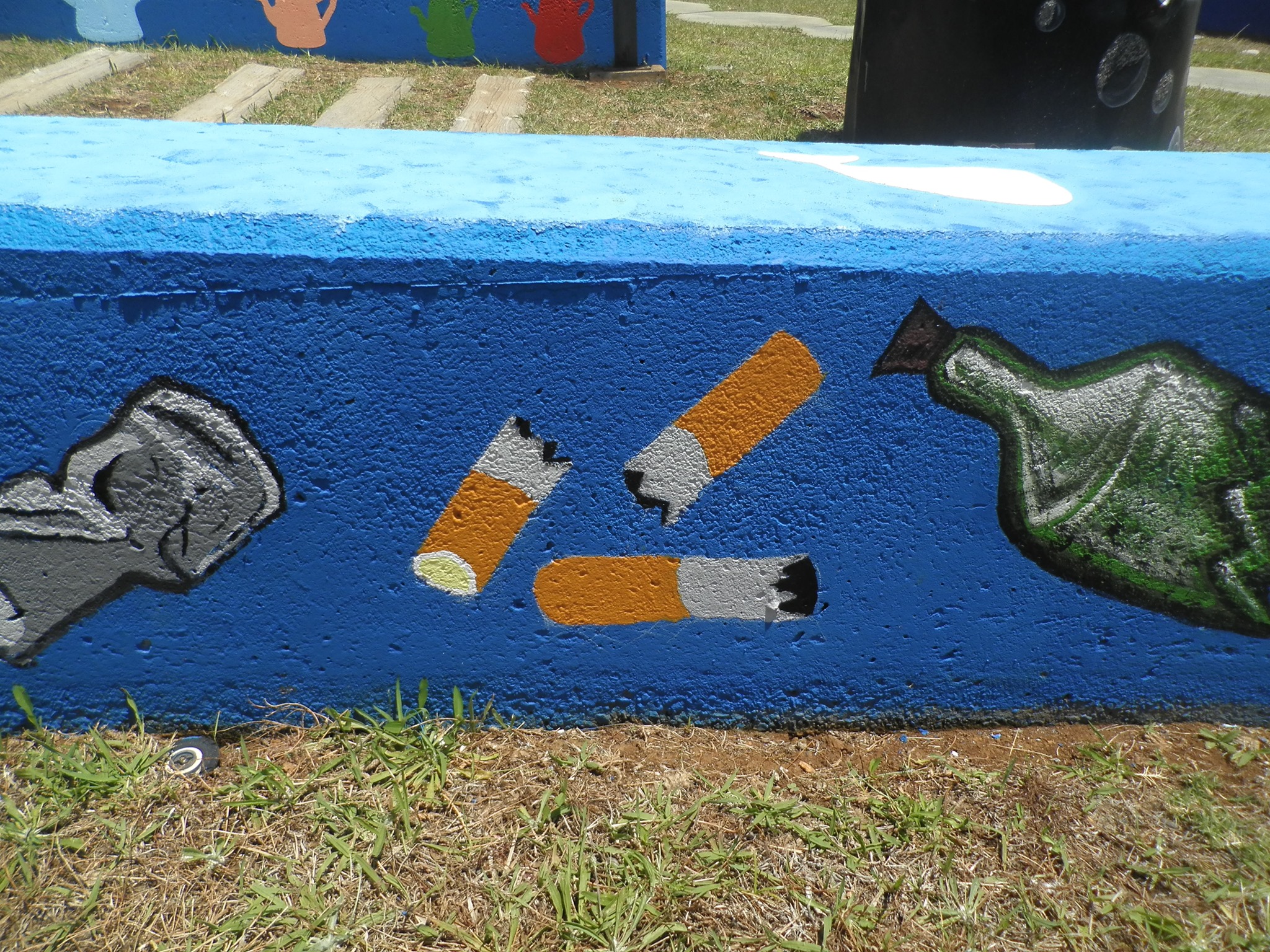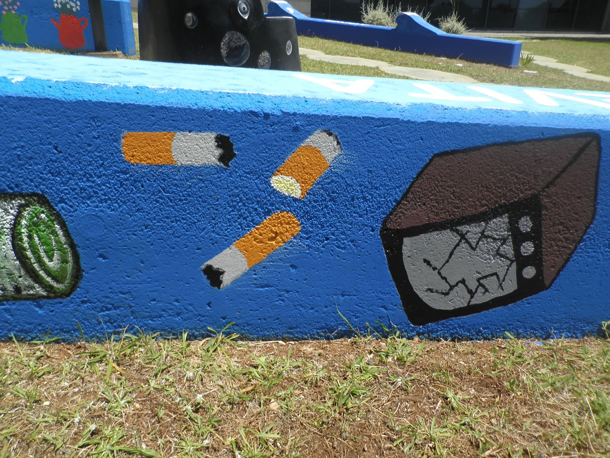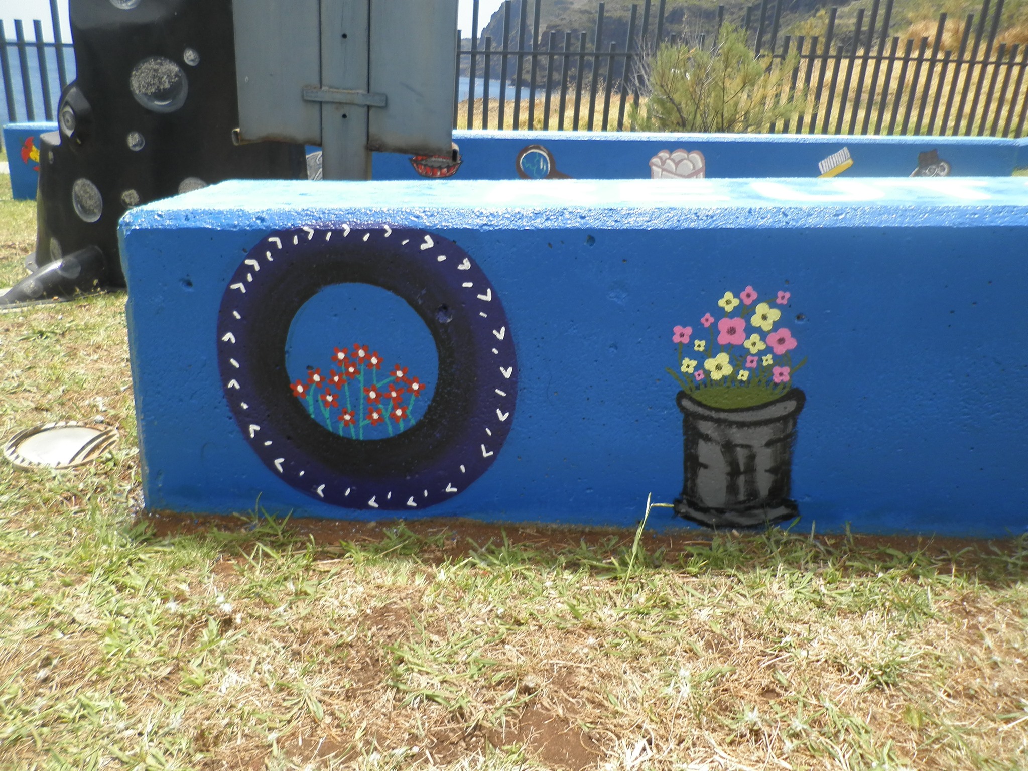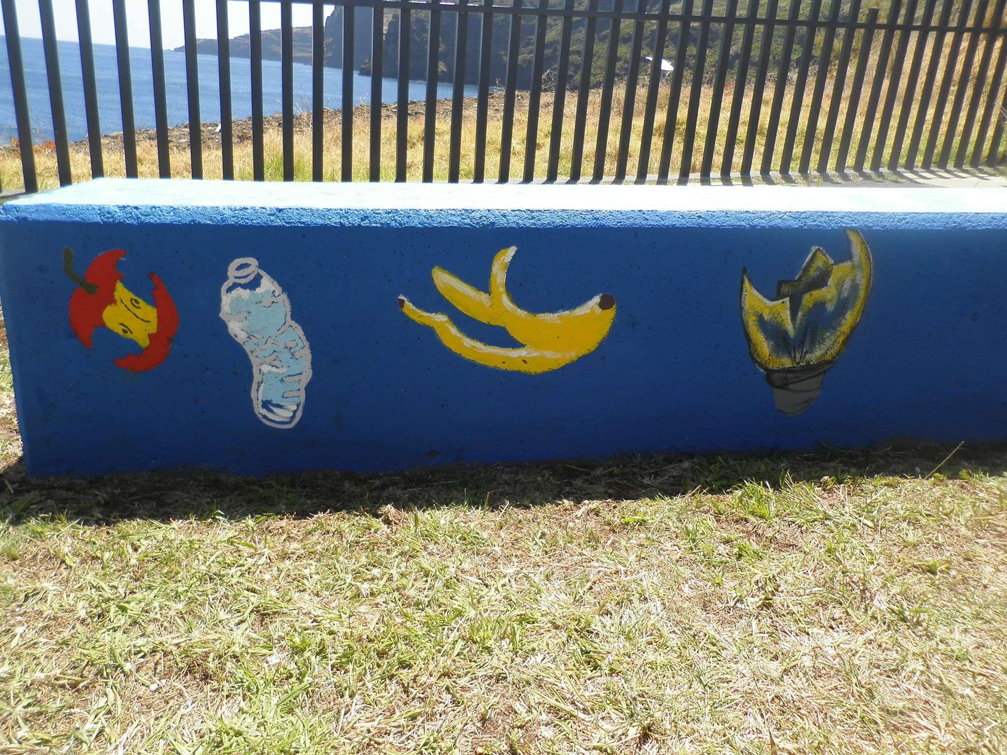 O jardim do Museu da Baleia da Madeira foi novamente alvo de intervenção para renovação, após, lamentavelmente e repetidamente, ter sido alvo de atos de vandalismo. Os objetos arrancados foram substituídos por pinturas representativas da mensagem que cada banco pretende transmitir, tornando este espaço num lugar onde todos possam desfrutar das fantásticas condições. As fotografias seguintes mostram o resultado final dessa remodelação.
